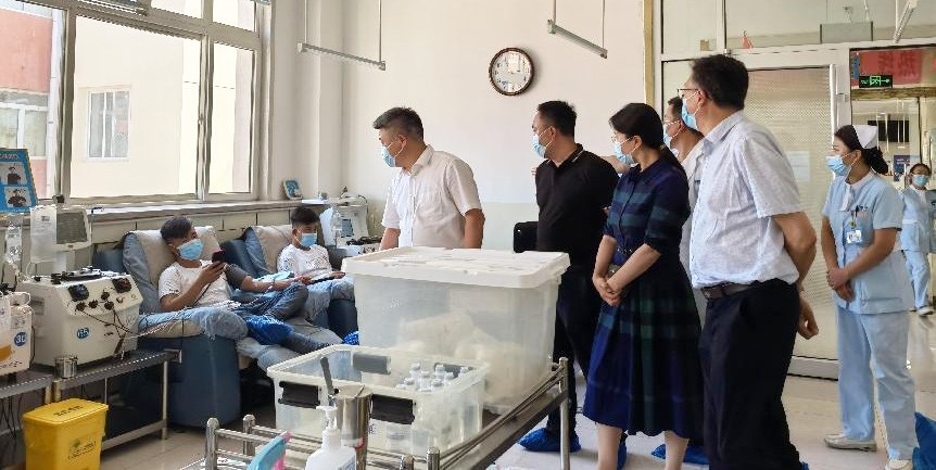 8月17日,天壇生物黨委書記、副總經(jīng)理劉亞娜,天壇生物黨委副書記、常務(wù)副總經(jīng)理周東波一行5人到青銅峽血漿站調(diào)研。血源管理中心副總吳婷,區(qū)域血源管理總監(jiān)路東陪同調(diào)研。劉亞娜一行實地考察了漿站的設(shè)施設(shè)備、工作流程、質(zhì)量程序文件以及防疫措施和物品使用情況。隨后,青銅峽漿站總經(jīng)理馬湘就漿站黨建工作、血源發(fā)展、漿站運營、支持當(dāng)?shù)匾咔榉揽毓ぷ鞯确矫孢M行匯報,詳細(xì)闡述了漿站發(fā)展經(jīng)驗及未來規(guī)劃。