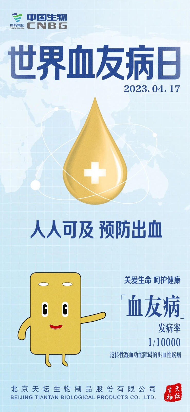 1989年世界血友病聯(lián)盟將每年4月17日設(shè)定為“世界血友病日”,旨在喚起全社會對血友病的認(rèn)知和關(guān)注,并積極為血友病患者提供支持和幫助,今年4月17日是第35個“世界血友病日“,讓我們一起來了解血友病,關(guān)愛“玻璃人”。